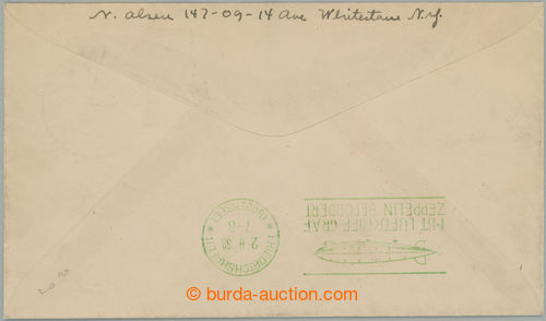 204 imagePhilately. CHICAGOFAHRT WELTAUSSTELLUNG / Sie.238Aba, airmail sent letter to New York through Pernambuco, franked with Zeppelin stamp 1RM CHICAGOFAHRT, Mi.496 and airmail stamp 50Pf, CDS FRIEDRICHSHAFEN 14.10.33, red trigonal flight cachet, mounted private label Zeppelin, on reverse transit Districto Federal 18.Out.1933; fine, rare, c.v.. 925EUR (Image) (Image2) (All Images)