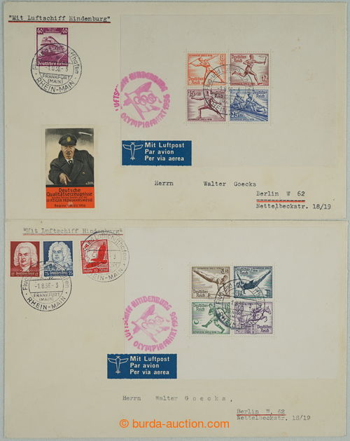 205 imagePhilately. OLYMPIAFAHRT / Sie. 427Bc, 2 Reg letters of this flight franked with both Olympic souvenir sheets; c.v.. 2.000EUR (Image) (Image2) (All Images)