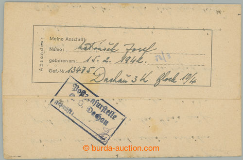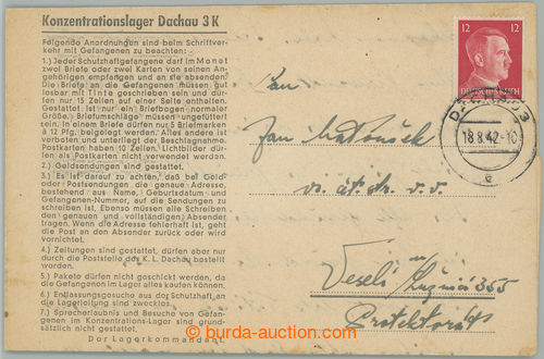 215 imagePhilately. C.C. DACHAU / preprinted folded blank form to Protectorate, with A. Hitler. 12Pf, CDS DACHAU 18.8.42, censorship mark Postzenzurstelle K.L. Dachau with signature; good condition (Image) (Image2) (All Images)