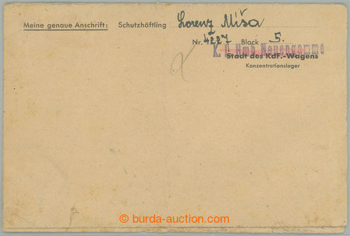 216 imagePhilately. C.C. FLOSSENBURG / preprinted postcard sent from C.C. to Domazlic, with 6Pf with CDS FLOSSENBURG 25.5.40, supplemented with violet line Zensiert and signature censor; very fine (Image) (Image2) (All Images)