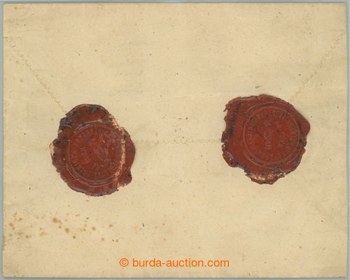 Philately. money letter for 97Fl addressed to Uhrineves to Benesov, franked with mixed franking Eagle 3 Kreuzer + Franz Joseph 15 Kreuzer issue 1890, posting c.d.s. UHRINeVES 10/11 90; good condition incl. seal (Image) (Image2)