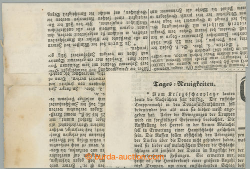 Philately. NEWSPAPER FISCAL STAMP ANK.4, Coat of arms 4Kr brown, fragment of CDS; overall fine piece, exp. Gisbert Zenker BPP, c.v.. 1.600EUR