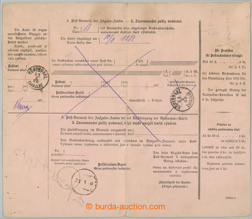 297 imagePhilately. Post-Nachnahme-Karte / Czech variety, whole dispatch-note with printed stamp of VI. issue 10Kr blue, uprated with 2 stamps of VI. issue 3 Kreuzer green, CDS PRAG 9/6 80, sent back with CDS ZBRASLAV 25/6 80; vertical fold, good condition (Image) (Image2) (All Images)