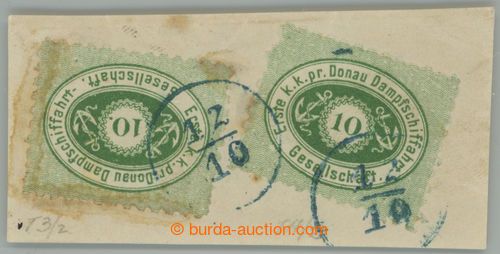 Philately. DDSG / ANK.3I - 2 pcs of 10Kr green on cut-square with date cancel. 12/10; fine and rare franking for letter over 1 Loth, see. Ferchenbauer. IV, page. 787, on cut-square c.v. ca. 2.000EUR! (Image) (Image2)