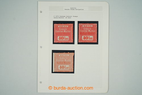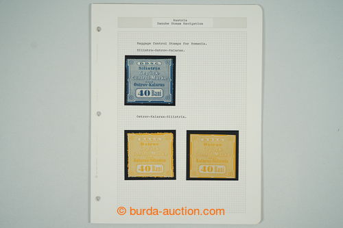 Philately. [COLLECTIONS] DDSG / 22 pcs of “Gepack-Control-Marke” revenue stamps, face-value 20 and 40 Bani in various colors, Braila-Galaz, Galaz-Braila, Ostrov-Silistria, Ostrov-Kalaras and Kalaras-Sinistria, 20B green; on pages