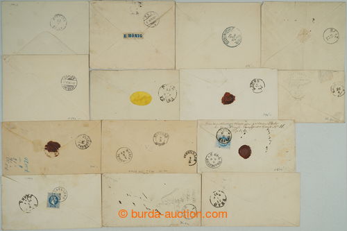 Philately. SELECTION / 14 postal stationery covers of various issues, from issue 1861 Eagle 10Kr blue; then issue 1867 - 8 pcs of values 5 Kreuzer, from that 2x Reg, 5+10Kr on reverse with CDS TEPLITZ and AMSCHELBERG; issue 1883