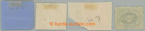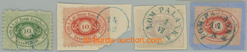 Philately. DDSG / ANK.1-4; complete issue, 17kr red and 10kr lilac, green and red, 3x on cut-square, from that 2x with rare blue LOM PALANKA; fine quality, attractive and favourite stamps, c.v.. 1.140EUR (Image) (Image2)