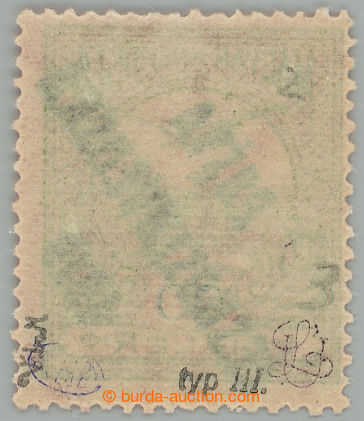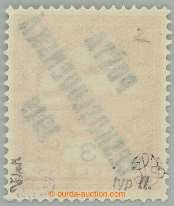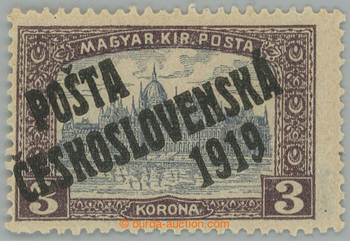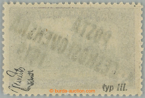 Philately. Pof.116, 3 Koruna violet / grey, overprint type III.; mint never hinged, lower production omission gum and short tooth, exp. Vrba and Mrnak (Image) (Image2)