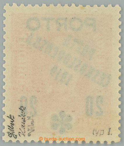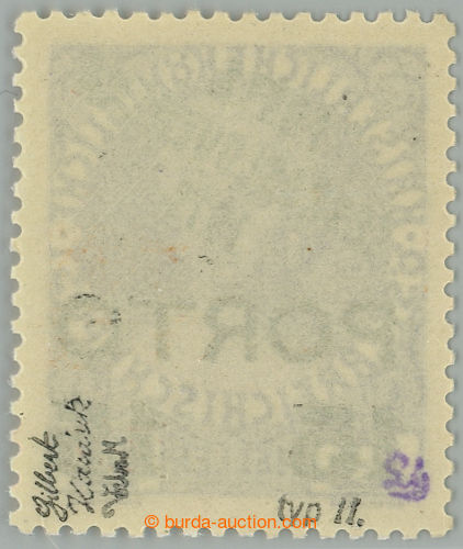 Philately. Pof.83, overprint PORTO 1h grey / red, overprint type II.; hinged, exp. by Gilbert and Vrba (Image) (Image2)