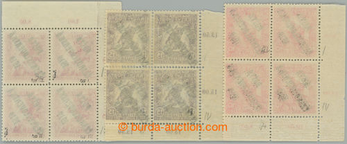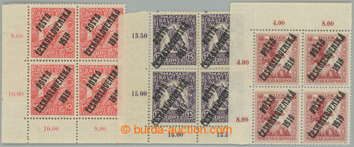 Philately. Pof.96-98, War 10f - 40f, complete set in/at corner blocks of four with control-numbers; 15f zpevnena perf, other mint never hinged, 40f exp. Vrba (Image) (Image2)