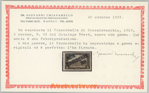 Philately. Pof.117, 5 Koruna brown, overprint type I.; hinged, exp. Vrba, fine piece (Image) (Image2)