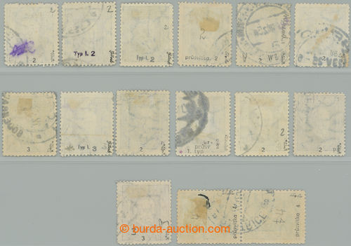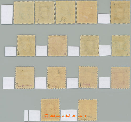 Philately. SELECTION of / Pof.190-203, comp. of 15 stamp. various types (I. - VII.) and values on stock-sheet A5, types and wmk marked; part hinged, some exp. by Gilbert (Image) (Image2)