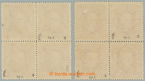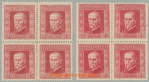 Philately. Pof.190B I, Gravure 1 Koruna red, comp. 2 pcs of bloks of four with wmk P5 (**/*) and P8 - mint never hinged; marked and exp. Vrba