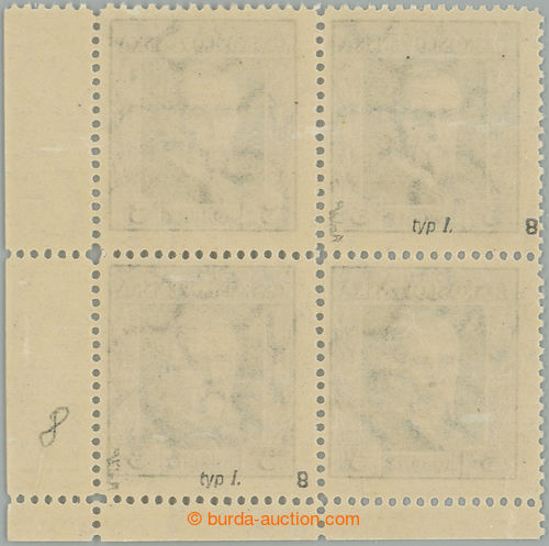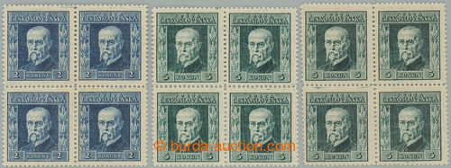 Philately. Pof.191B, 193B, Gravure 2CZK blue, block of four with wmk P7 + 2x block of four 5CZK green, wmk P7 and P8; minor gum fault, exp. Vrba