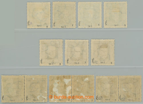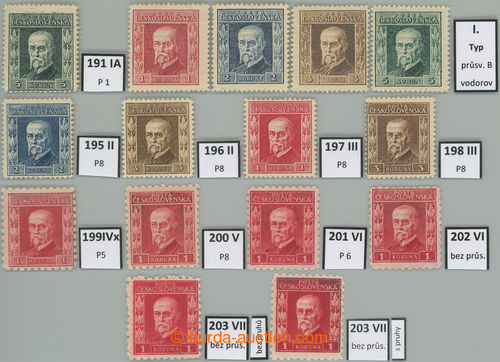 Philately. SELECTION of / Pof.197-201, comp. of 10 stamp. III. - VI. type, contains type III 1CZK and 3CZK P6; IV. 1CZK with P6 and P7, IV. type 1CZK with bands with P5; type V. with P6, pair P7; 2x exp. Vrba (Image) (Image2)