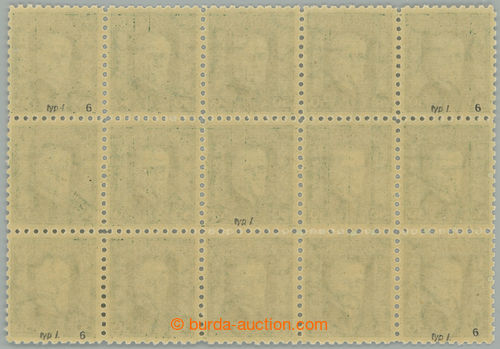 Philately. Pof.204 I, 75. birthday T. G. Masaryk 50h green in/at 15-bloku, type I., wmk P6; mint never hinged, marked Vrba (Image) (Image2)