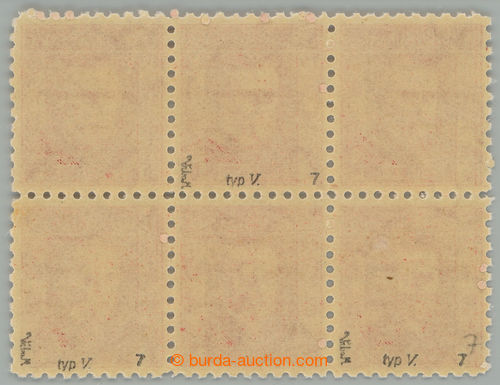 Philately. Pof.200, Gravure 1CZK red in/at block of 6, V. type, wmk P7; mint never hinged, minor gum fault on 1 stmp., exp. Vrba (Image)