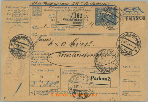 1323 imagePhilately. CPP16, Hradcany 10h thick shading, addressed to to Turkey, cash franked/paid with cancel. FRANCO, CDS VRATISLAVICE N. N. 9.V.24, transit SUBOTNICA 15.V.24, arrival STAMBOUL ARRIVE 3.6.24; good condition, without folds, c.v.. 2.000CZK (Image) (Image2) (All Images)
