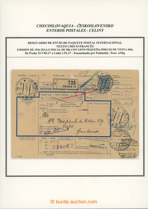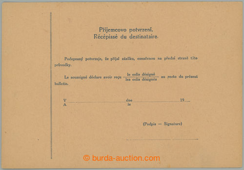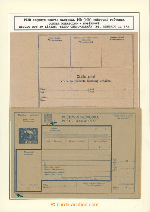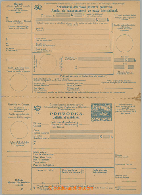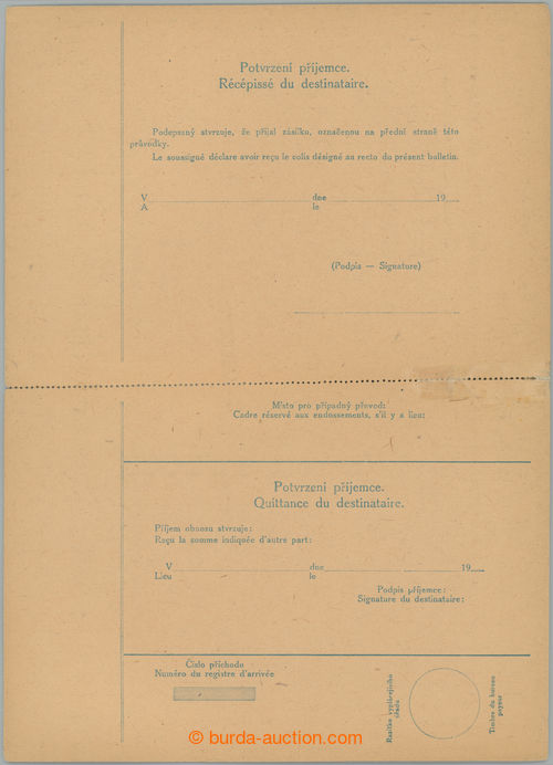1324 imagePhilately. CDP10, Hradcany 10h blue, complete C.O.D. dispatch-note with sale price 15h, brown-pink carton; R underglued povolena perf, c.v.. 3.000CZK (Image) (Image2) (All Images)