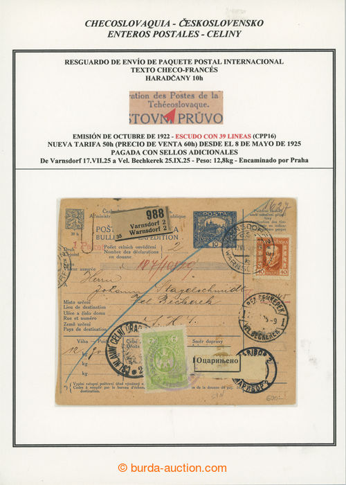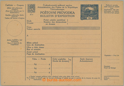 1322 imagePhilately. CPP16, Hradcany 10h blue, whole Un international dispatch note, emblem with ridkym srafovanim and sale price 20h, brown-pink carton; several nepatrnych dots (Image) (Image2) (All Images)