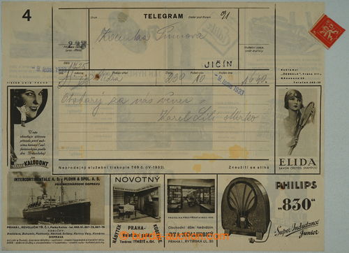 1330 imagePhilately. CEREKLA No. 4 (printed matter 769 No. IV-1932), form/blank advertising telegremu, i.a. car Areo, Elida, Kalodont, Philips and other, used, A4; standard traffic folds and slightly toned, rare occurrence! (Image) (Image2) (All Images)
