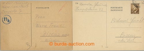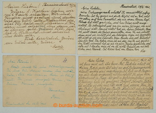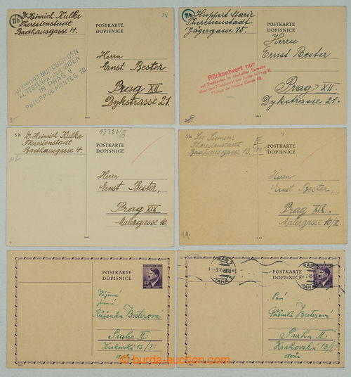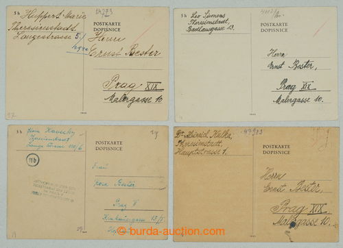 1418 imagePhilately. GHETTO TERESIENSTADT - PROTECTORATE - PRIBeH / selection of 22 pcs of cards addressed from ghetto on/for one address to Prague, from that 2 cards sent closely before/(in front of) osvobozenim, all transfered by courier on/for Jewish village/community, only 3 pcs of franked and Us post, 14 pcs of with various postmarks Ruckantwort nur/ auf Postkarten..../ Philip de Monte Gasse 18. in/at blue or red color; good condition (Image) (Image2) (Image3) (Image4) (Image5) (Image6) (All Images)