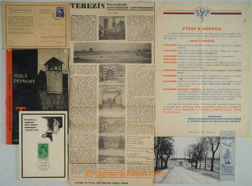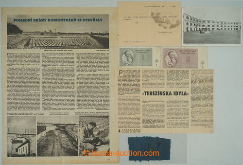 1413 imagePhilately. GHETTO TERESIENSTADT / PRIBeH / selection of documents after/around prisoner/-s Terezin ghetta: i.a. platena nasivka with text KL.T (used after/around freedom prisoner/-s vypomahajicimi in zdravotnich service), Un pre-printed PC, sent PC, publication Small Fortress Terezin, obehove Terezin bank note/-s 1 Koruna and 2 Koruna, newspaper cut-squares and oths.; good condition, interesting collection (Image) (Image2) (All Images)