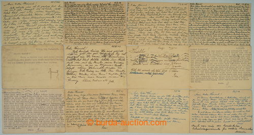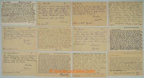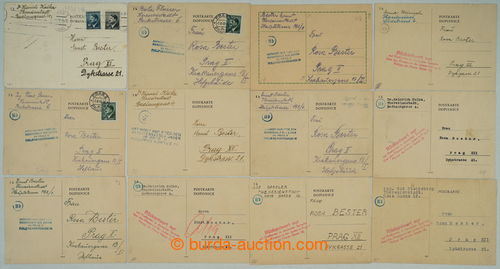 1419 imagePhilately. PROTECTORATE - GHETTO TERESIENSTADT - PRIBeH / comp. 12 pcs of cards addressed to ghetto on/for one Czech prisoner, from that 4 pcs of with blue arrival frame cancel. Judische Selbstverwaltung/ Theresienstadt/ Post and Verkehr, 1x red framed pmk Altestenrat der Juden in Prag with date 29.IX.43, outside 1 pcs of all CDS PRAGUE; good condition (Image) (Image2) (All Images)