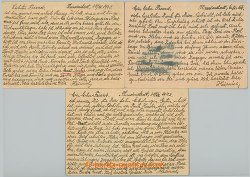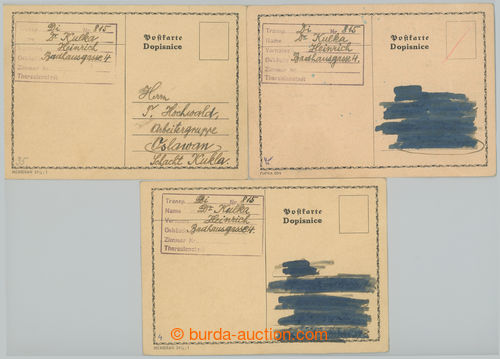 1416 imagePhilately. GHETTO TERESIENSTADT - WORK CAMP OSLAVANY / comp. 3 pcs of cards from one Czech prisoner on/for prisoner in/at work camp in Oslavany near Brno - colliery Kukla, 2x zabarveny recipient; good condition (Image) (Image2) (All Images)
