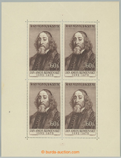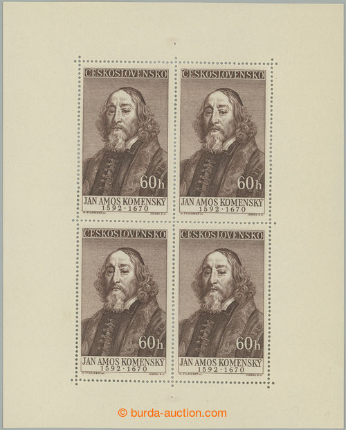 Philately. Pof.PL930 V, Comenius 60h, PB with 4 cut notches, V. type, significant oblique shifted cut; mint never hinged (Image) (Image2)