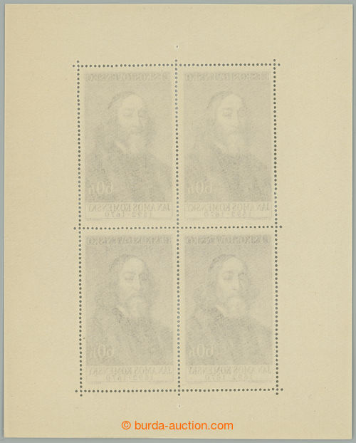 Philately. Pof.A967 II, miniature sheet Zapotocky 2Kcs, type II - berry; several usual small production vynechavek gum, otherwise very fine, exp. by Gilbert (Image) (Image2)