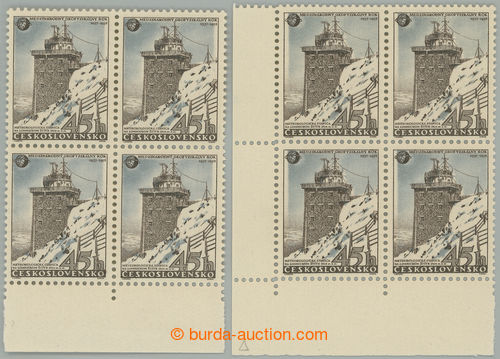 Philately. Pof.973 production flaw, International geofyzikalni year 45h, 2x block of four with production flaw - shift blue color L and R; mint never hinged (Image) (Image2)