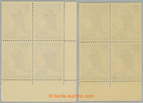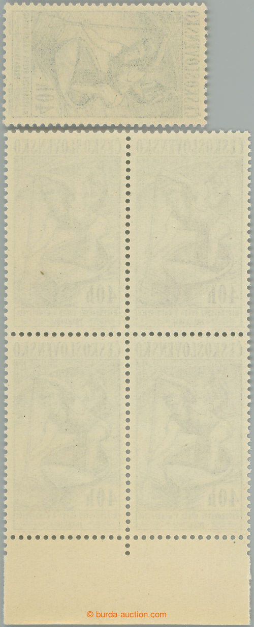 Philately. Pof.976, Sport 40h, the bottom marginal block-of-4 from reprint (light blue, print 22.I.58), for comparison also with common grey-blue stamp.; rare also as single pieces (Image) (Image2)