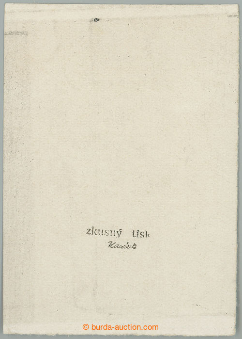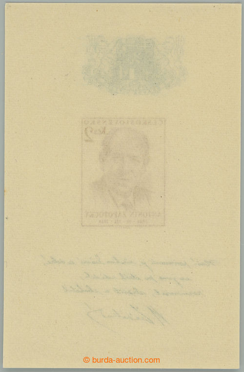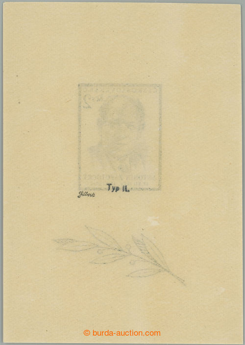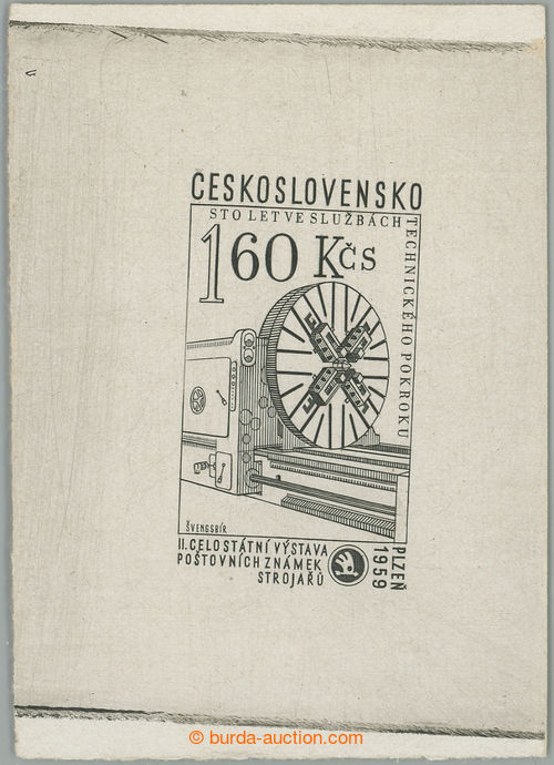 Philately. PLATE PROOF Pof.1053, Skoda Plzen 1,60Kcs, proof print unfinished gravure (neproryty wedge [ ˇ ] above C) in black color on chalky paper without gum, wide margins; very fine, exp. by Karasek (Image) (Image2)