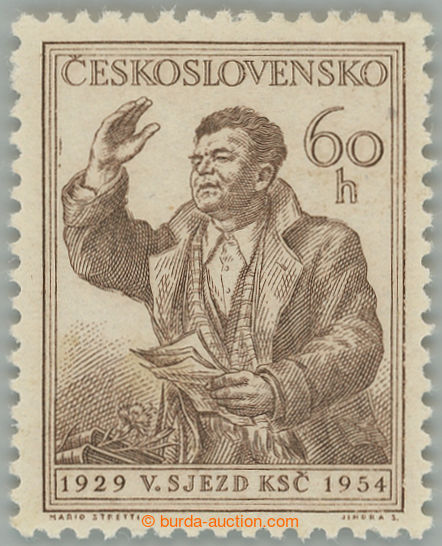 Philately. Pof.770 plate variety, Gottwald 60h, stamp. with plate variety 43/1 - vykricnik L near hand; mint never hinged, c.v.. very misvalues, one of most sought flaws new currency! (Image) (Image2)