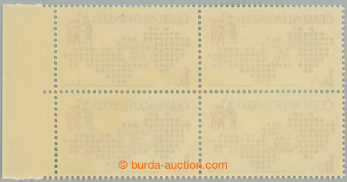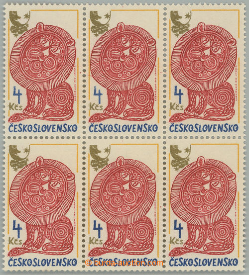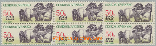 Philately. Pof.2507 production flaw, 50 years Zoo Prague 50h, block of four with production flaw - significant shift violet OT color transport up (inscription Zoo zasahuje to values); also with common pair on/for comparison,