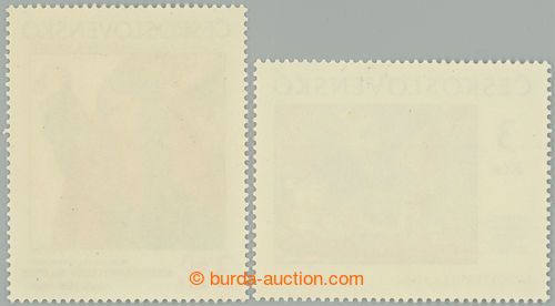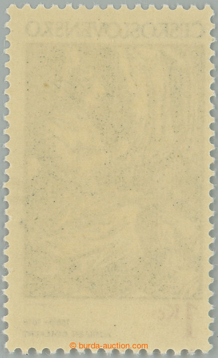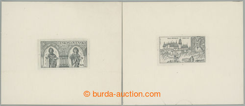Philately. PLATE PROOF Pof.2545, Krivoklat 50h, 2x proof print unfinished gravure (neproryty wedge [ ˇ ] above C) stamp. and jejiho coupon in black color on/for chalky carton without gum, wide margins; very fine (Image) (Image2)