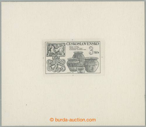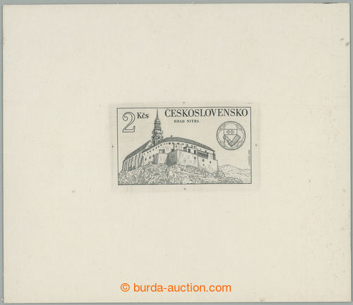 Philately. PLATE PROOF Pof.2548, Nitra 3Kcs, proof print unfinished gravure (neproryty wedge [ ˇ ] above C) in black color on/for chalky carton without gum, wide margins; very fine (Image) (Image2)