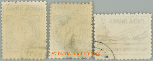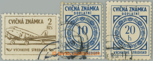 Philately. TRAINING STAMPS / Pof.5B, D1B, D2B, value 2CZK brown + postage-due 10h and 20h blue, all with part of anonymniho postmark; c.v.. 650CZK