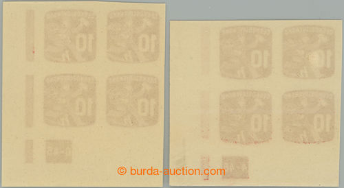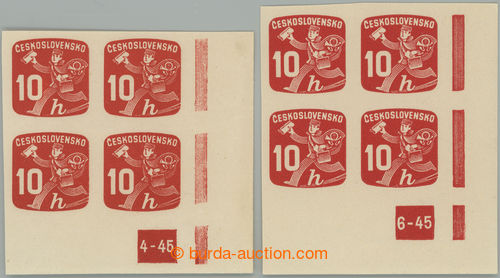 Philately. Pof.NV24 plate number, Newspaper stamps 10h, 2x LR corner blk-of-4, 1x plate number 4-45 + 1x plate number 6-45; mint never hinged