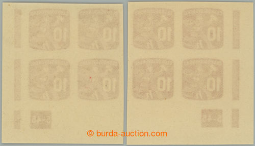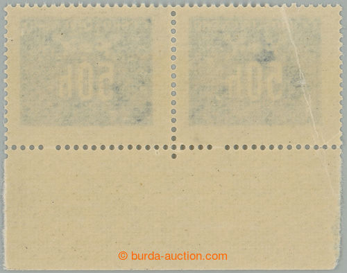 Philately. Pof.D69 production flaw, Hlubotiskove issue 50h, the bottom horizontal pair, omitted 6. perf hole from R; mint never hinged, bend in L stamp. (Image) (Image2)
