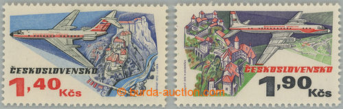 Philately. Pof.L76xb-L77xb, 50 years Czechoslovak Airlines 1,40Kcs and 1,90Kcs, both stamp. on paper optically cleared; mint never hinged, exp. Kulda, mark Pofis (Image) (Image2)