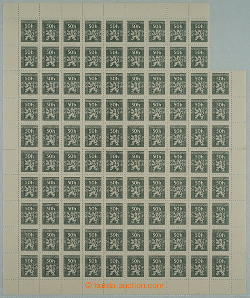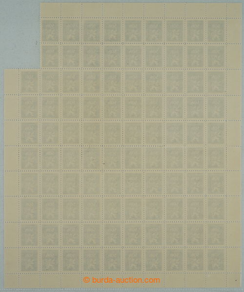 Philately. COUNTER SHEET / Pof.SL1 RE, Official (I) 50h, incomplete sheet (missing 2 upper stamp.) with all 10 retouch plate variety interrupted tail of lion; horiz. fold, otherwise mint never hinged (Image) (Image2)