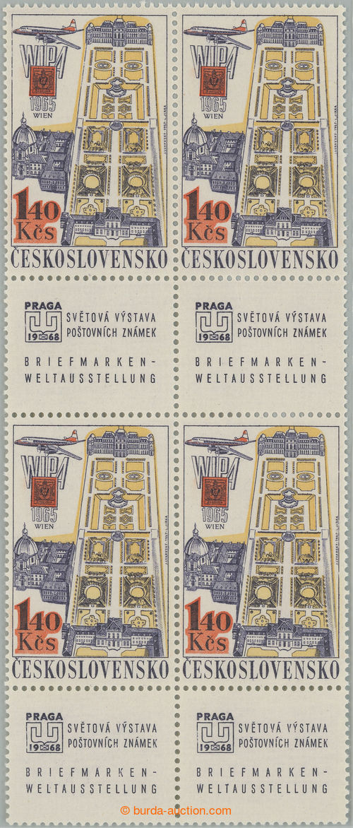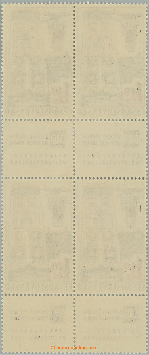 Philately. Pof.L59xb KD, PRAGA 68, value 1,40Kcs, block of four with lower coupons, optically cleared paper; mint never hinged (Image) (Image2)
