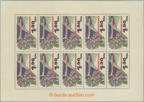 Philately. Pof.PL L77xb, 50 years Czechoslovak Airlines 1,90Kcs, blk-of-10 on paper optically cleared; very slightly toned in margin, otherwise fine piece, exp. Kulda, often missing in collections! (Image) (Image2)