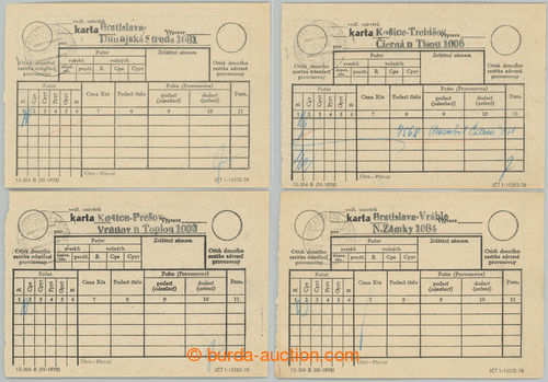 Philately. UZAVeRY AIRMAIL STAMPS PREPRAVY / PRAGUE - BRATISLAVA - KOSICE/ 2001 / 26.IX.79, comp. 4 pcs of blank forms for mailing airmail post, for various mobile post-office (on a bus) No. 1003, 1006, 1081 and 1084; good