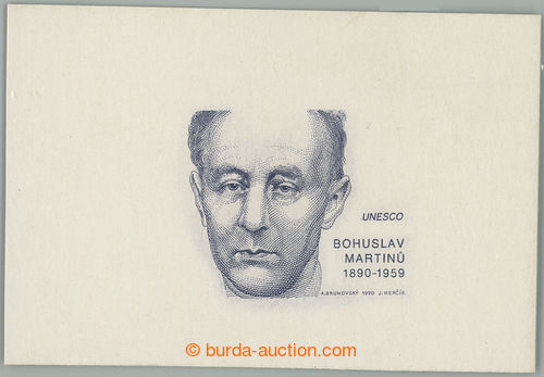 Philately. PLATE PROOF Pof.2927, Martinu 10Kcs, print unfinished stage (missing obrysove line limecku) in/at grey-black color on chalky paper without gum, wide margins, signature Hercik; very fine (Image) (Image2)