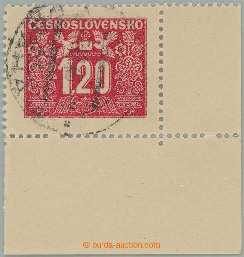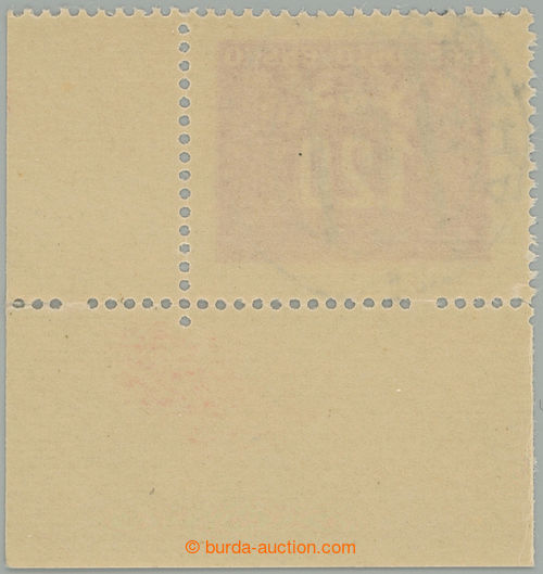 Philately. Pof.D71 production flaw, Hlubotiskove issue 1,20Kcs, used LR corner piece, 2x omitted 7. perf hole from the L; original gum, c.v.. -,-, one from two known findings, exceptional! (Image) (Image2)
