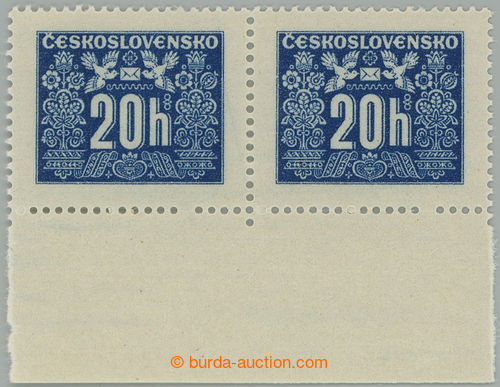 Philately. Pof.D68 production flaw, Hlubotiskove issue 20h, marginal Pr sĀ 2x omitted 6. perf hole from R in lower perf; superb, vĀ katalogu price struck through, rarest item this issue! (Image) (Image2)
