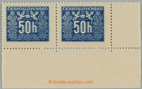 Philately. Pof.D69 production flaw, Hlubotiskove issue 50h, right the bottom corner Pr, omitted 6. perf hole from R; mint never hinged